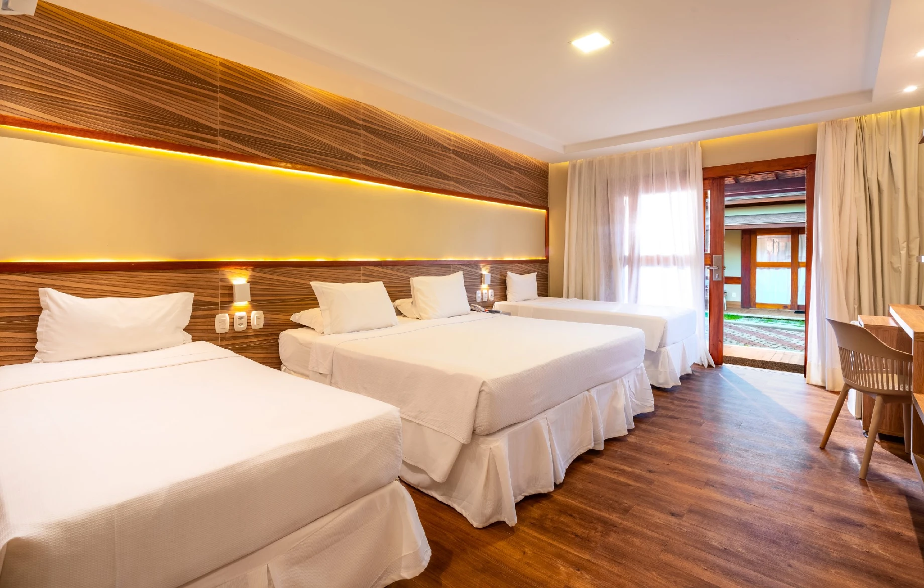 A melhor opção com conforto e comodidade para sua família! Localizados em alamedas, os chalés luxo são bem aconchegantes. Ficam próximos às áreas comuns do Resort, restaurantes, piscina central e baby copa.