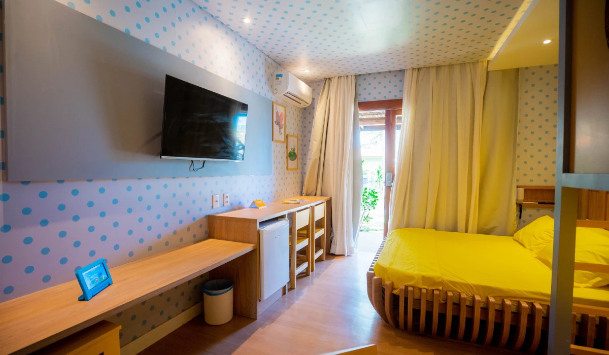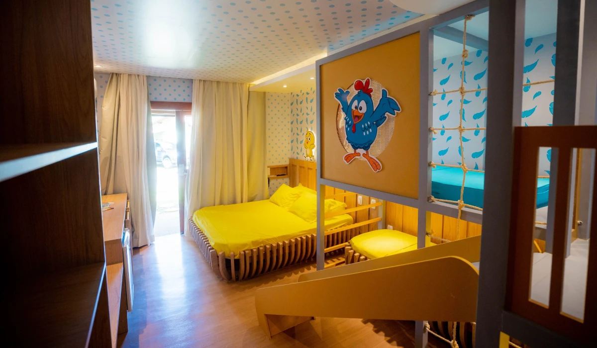 Viva a magia do mundo divertido da Galinha Pintadinha com nossos quartos temáticos. A Galinha e toda sua turma chegam para trazer ainda mais alegria e tornar a experiência da sua família ainda mais feliz e única! Com uma decoração lúdica e colorida, as crianças vão liberar a imaginação e criar grandes lembranças ao lado dos seus personagens favoritos. Tudo isso com todo conforto e excelente localização.